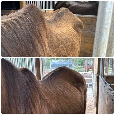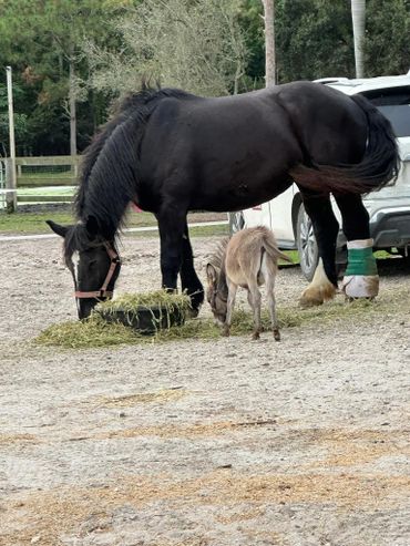 Maggie was bailed from an auction lot in Mississippi and comes with a leg condition known as verrucous pastern dermatitis and chronic progressive lymphedema. Not much is known about VPD but CPL is a known draft horse condition. It is not curable, only manageable.