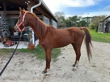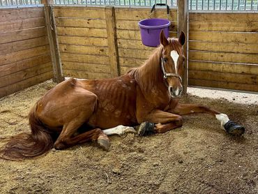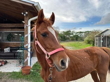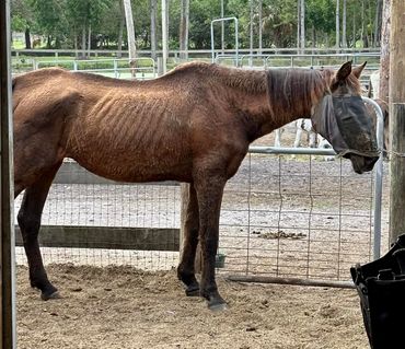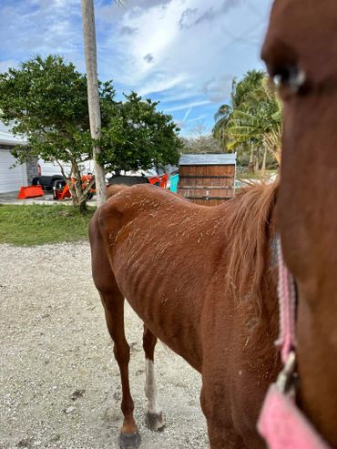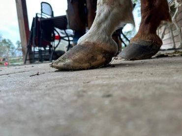Angel's owner passed away and the new owner was unable to care for Angel's neglected feet. She has severe laminitis and requires special shoes and farrier care.