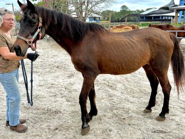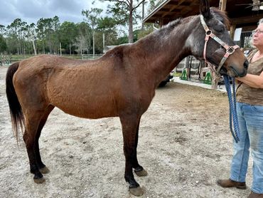 Pip was originally sold to someone as a pony for his daughter but was sold as a reported 15 yo. Given her actual age, she cannot chew hay and needs pelleted food.
